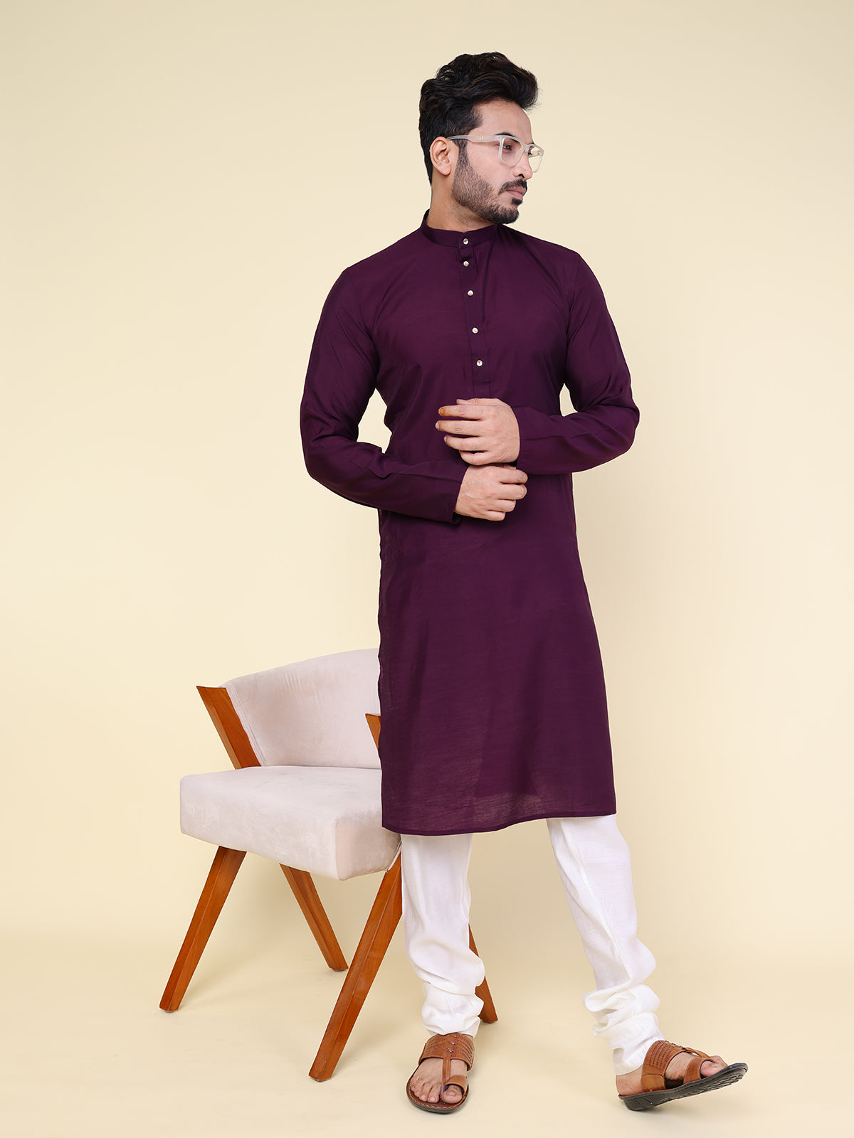 Men's Solid Silk Purple Kurta with Pajama