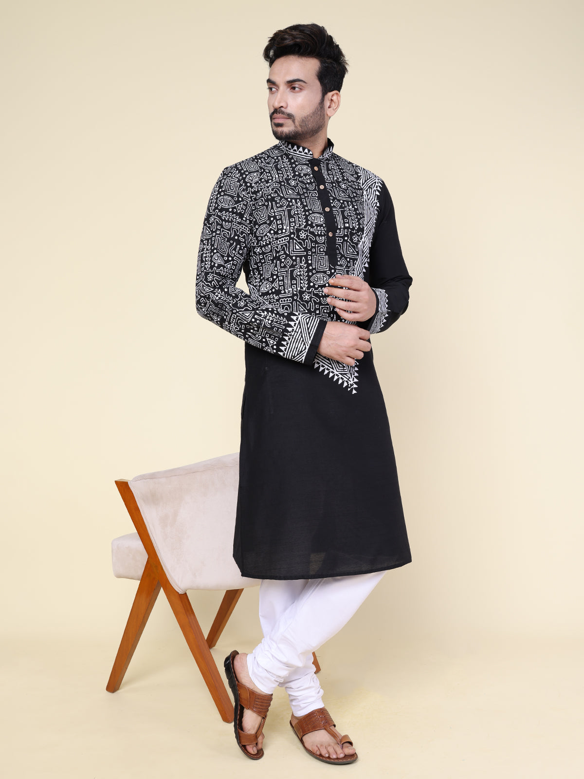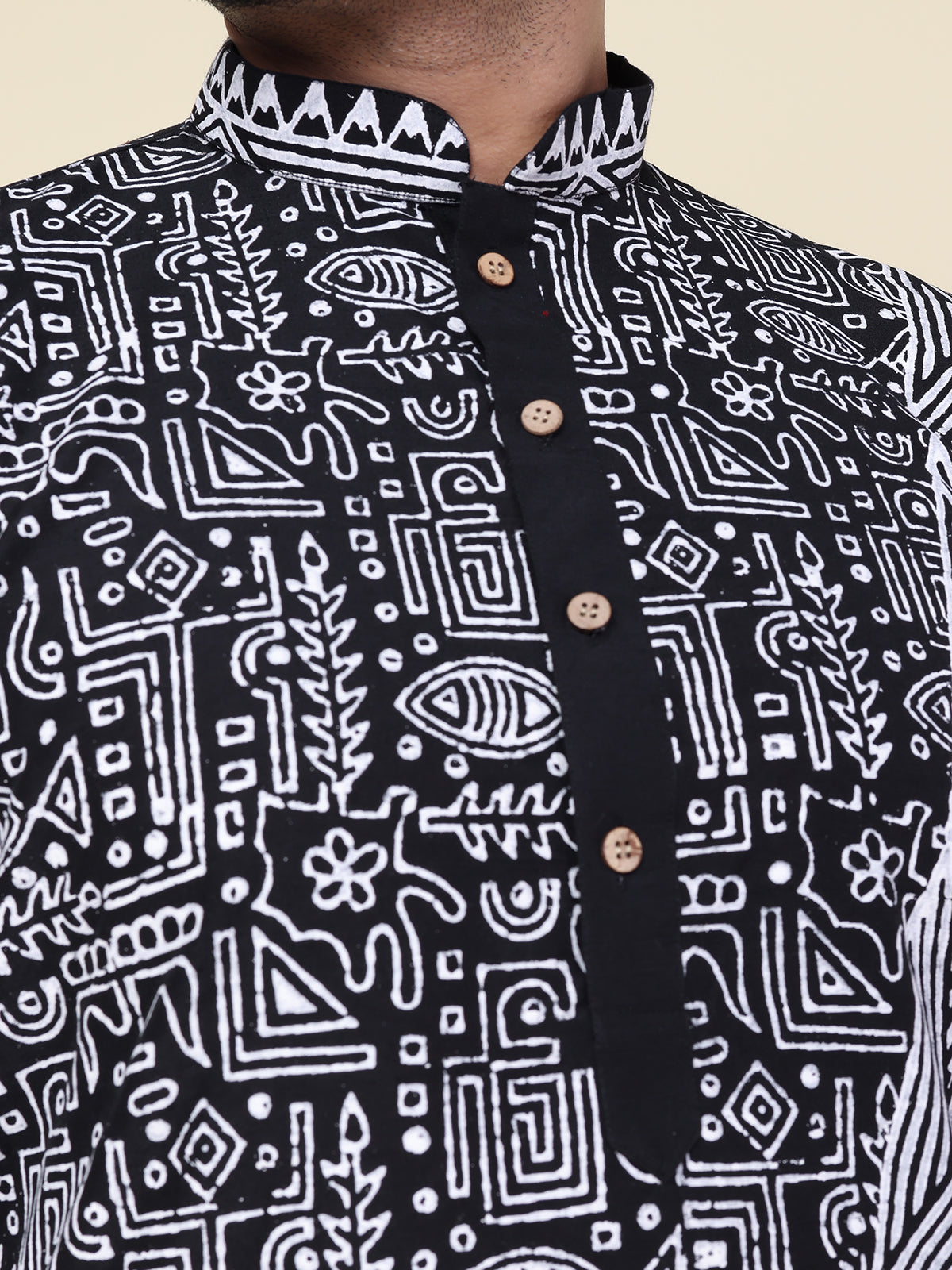 Heritage Hand Block Cotton Kurta in Black