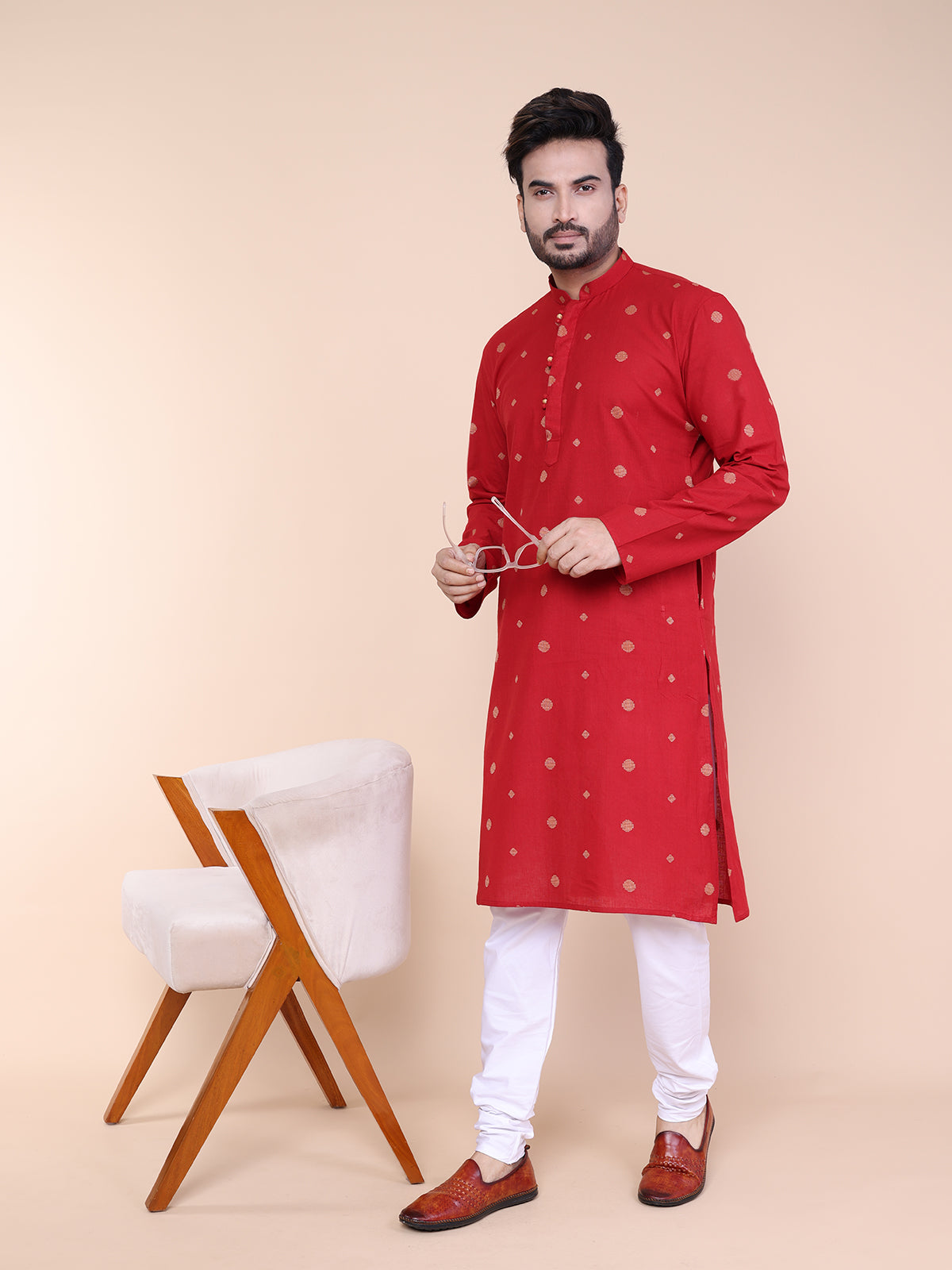 Men's Maroon Printed Cotton Kurta