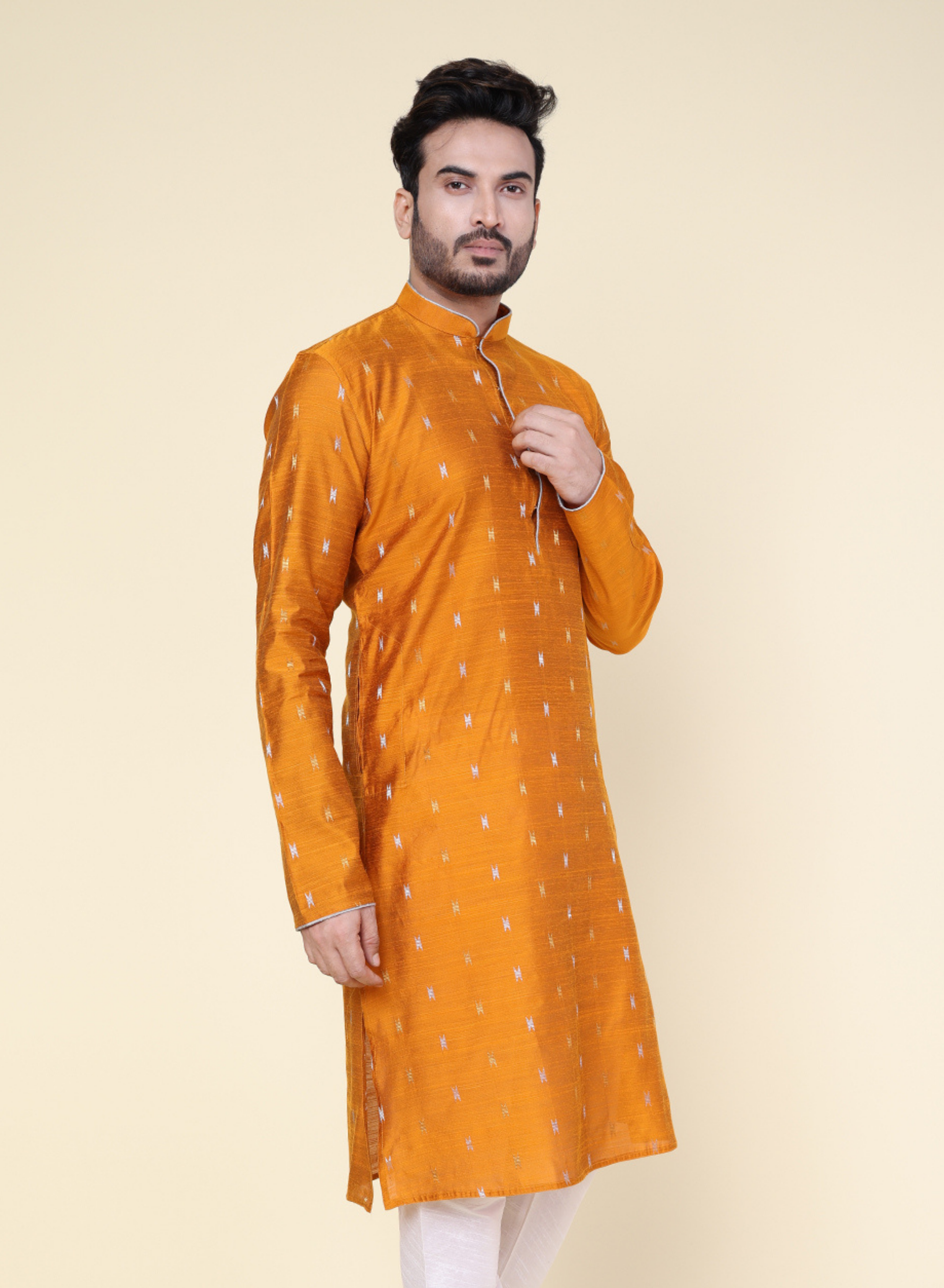 Men's Rust Silk Kurta