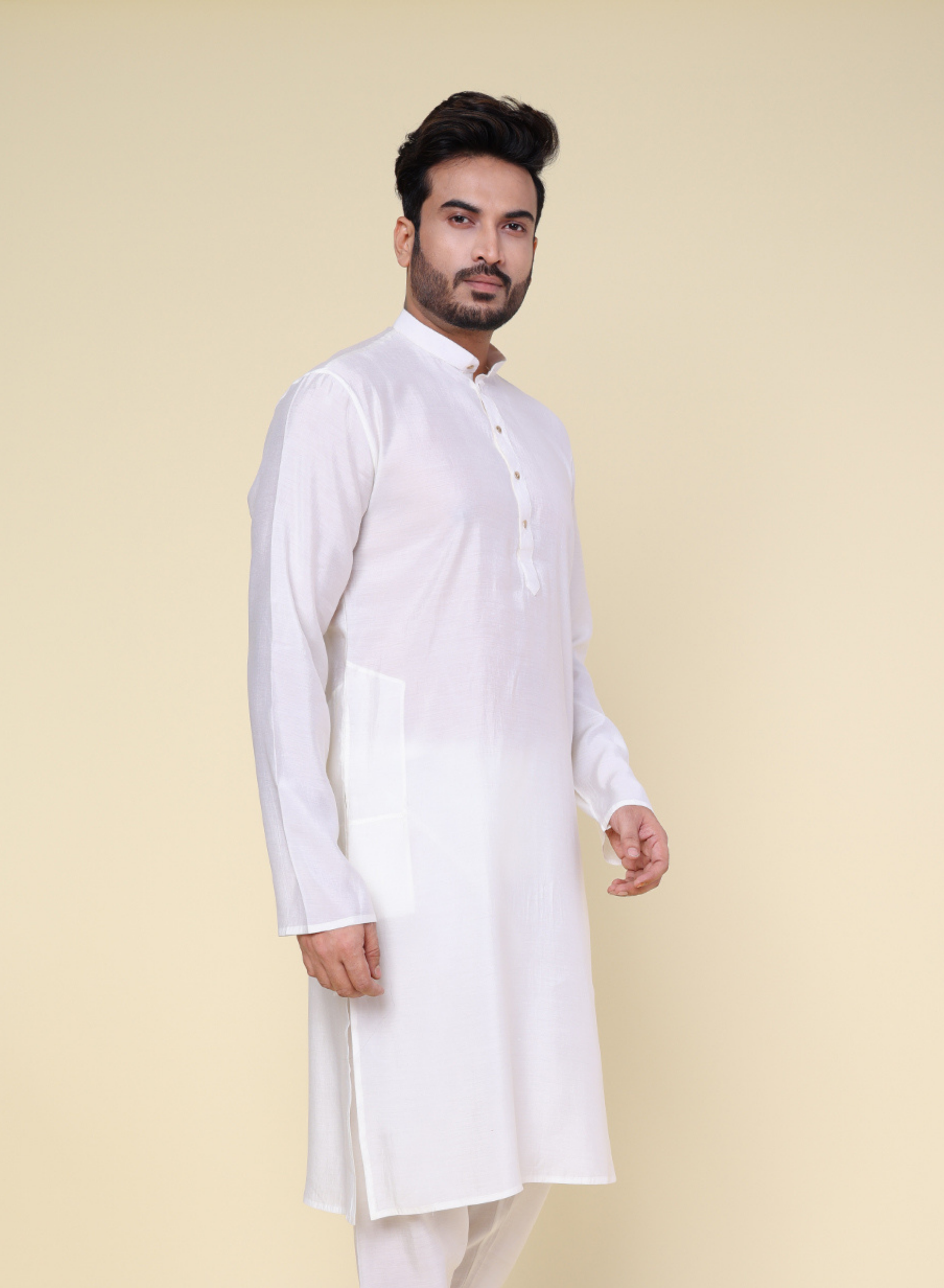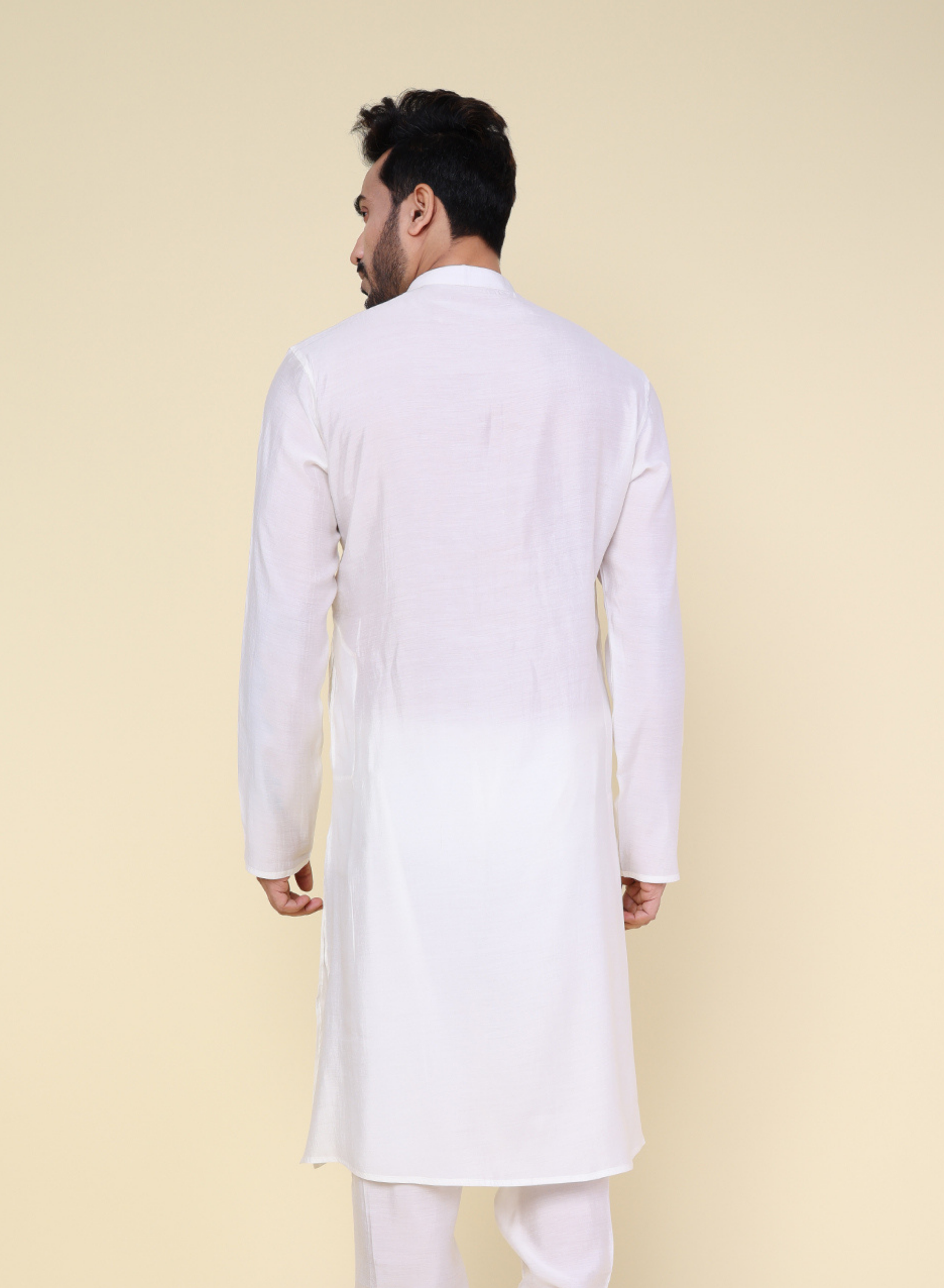Men's Solid Silk White Kurta