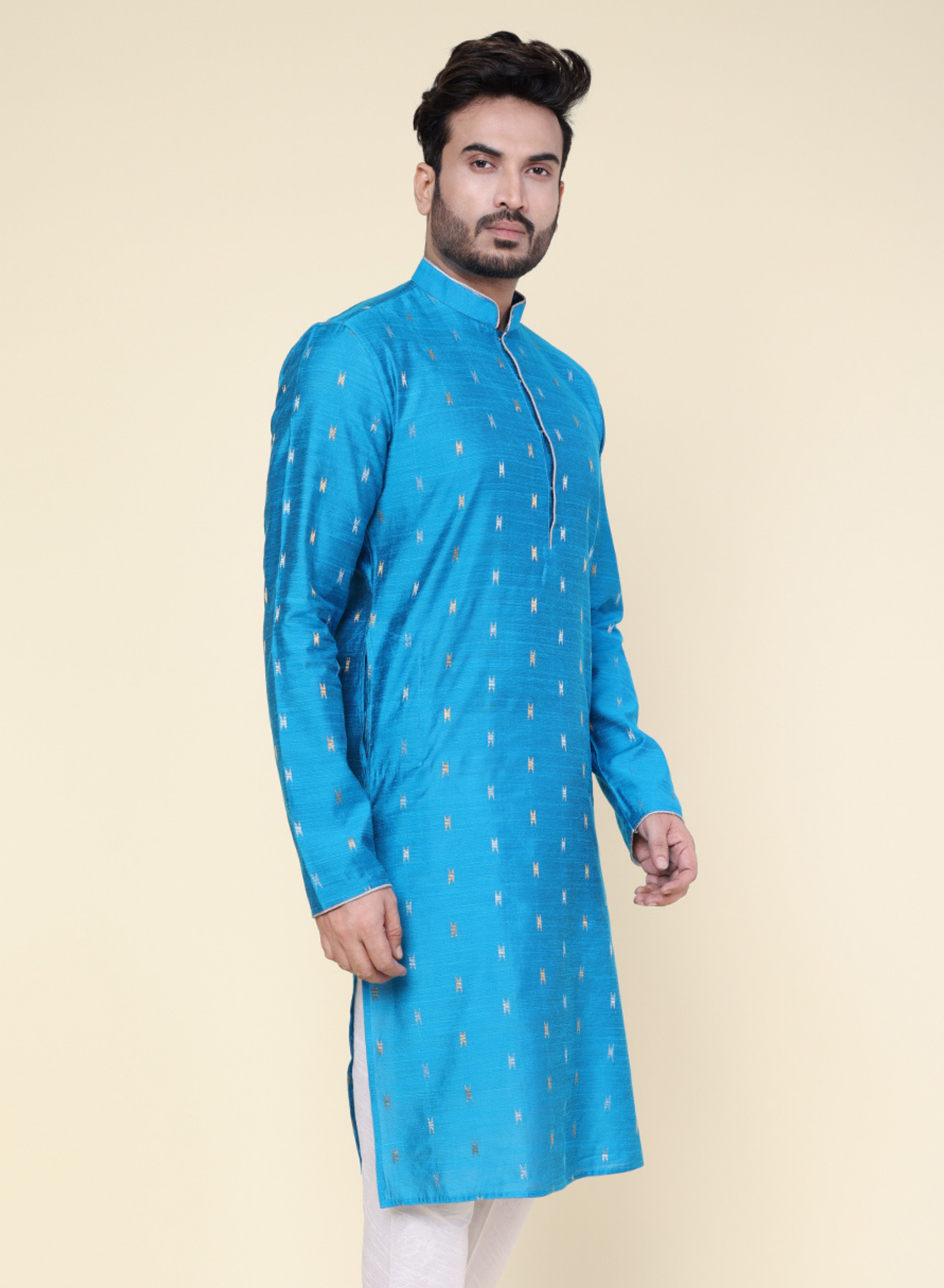 Men's Aqua Silk Kurta