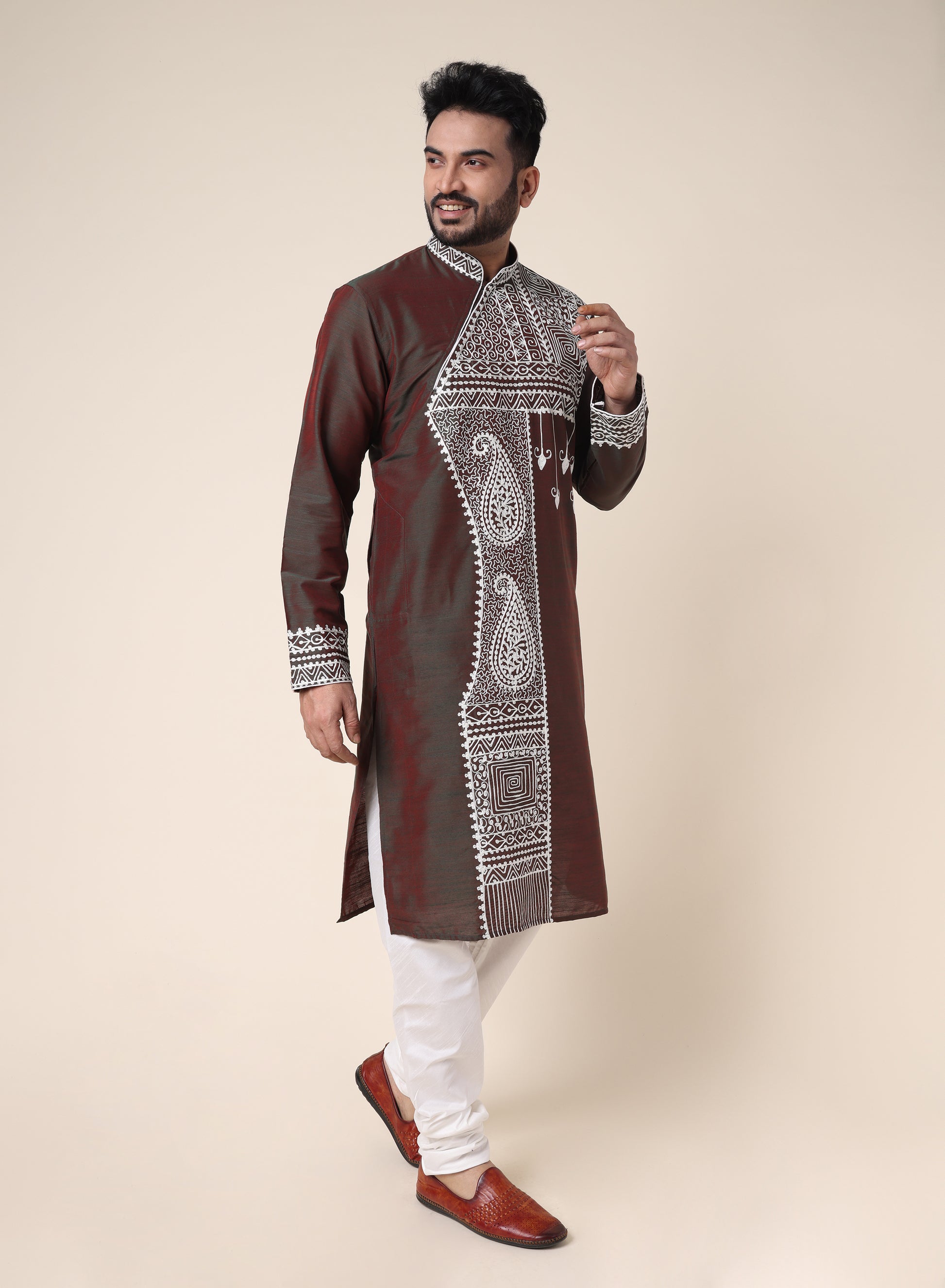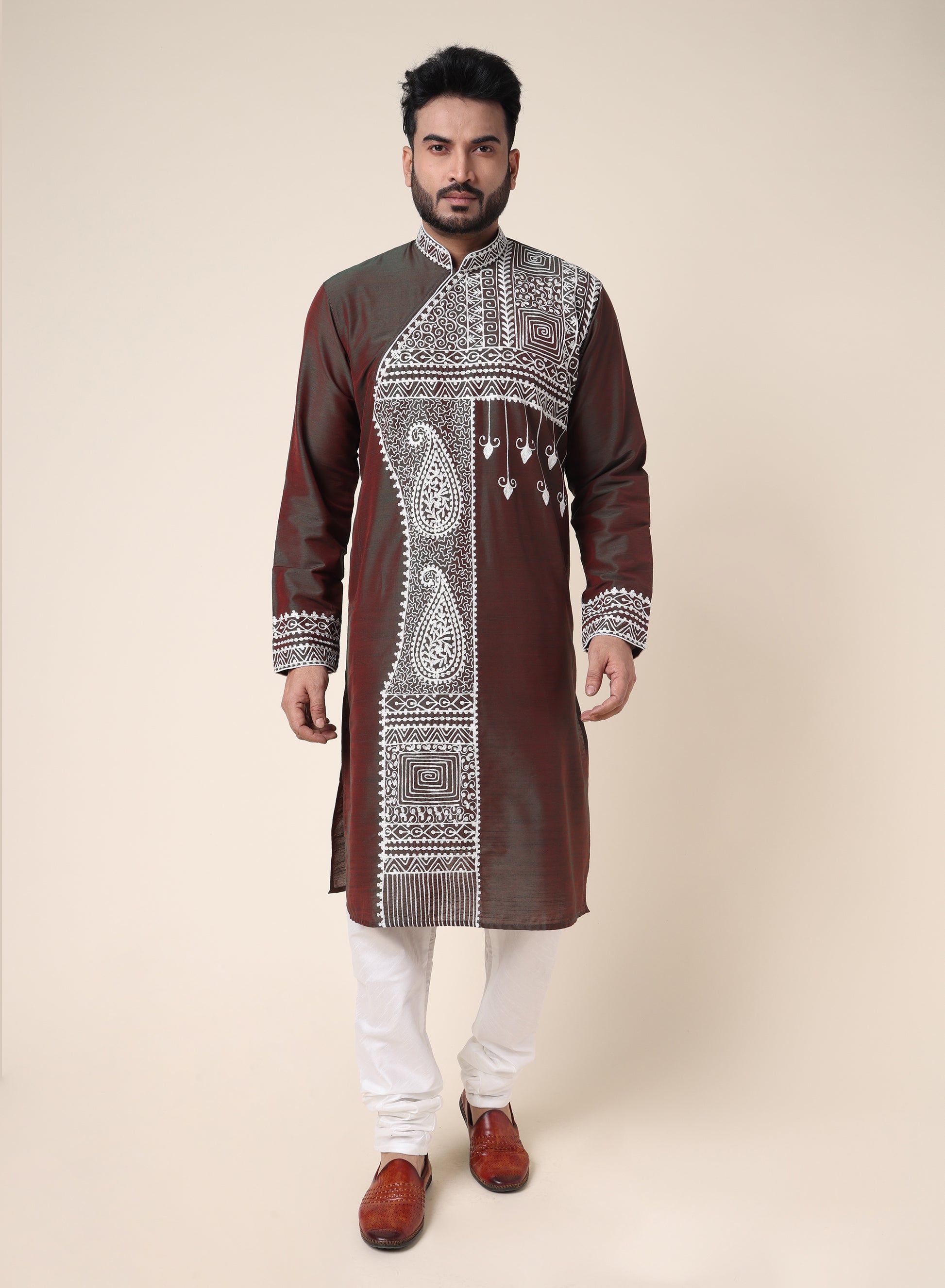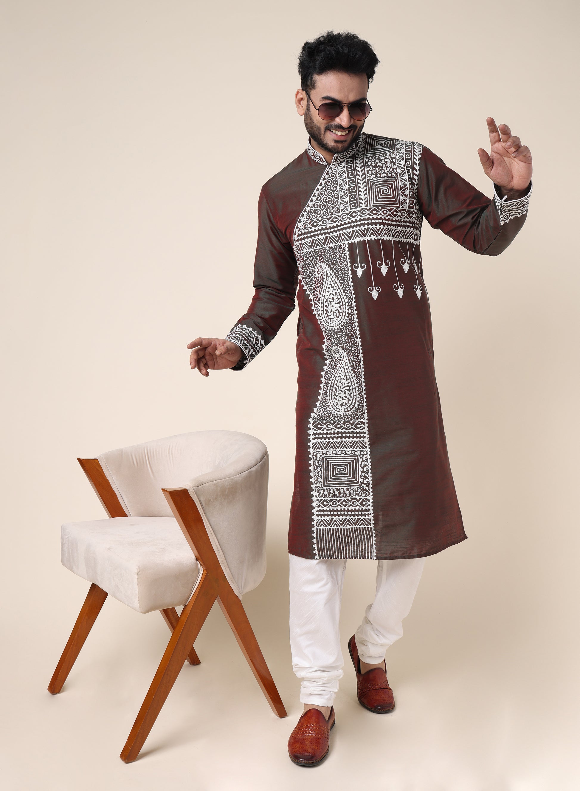 Men’s Brown Embroidered Designer Kurta