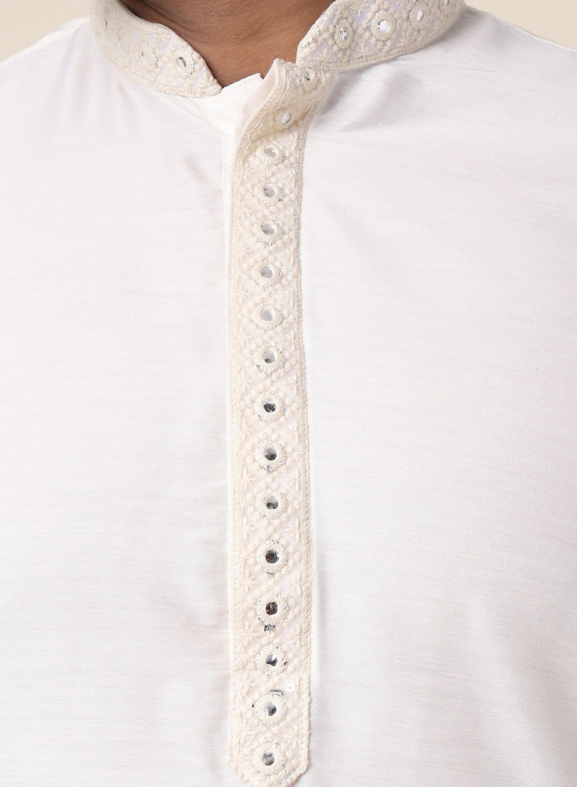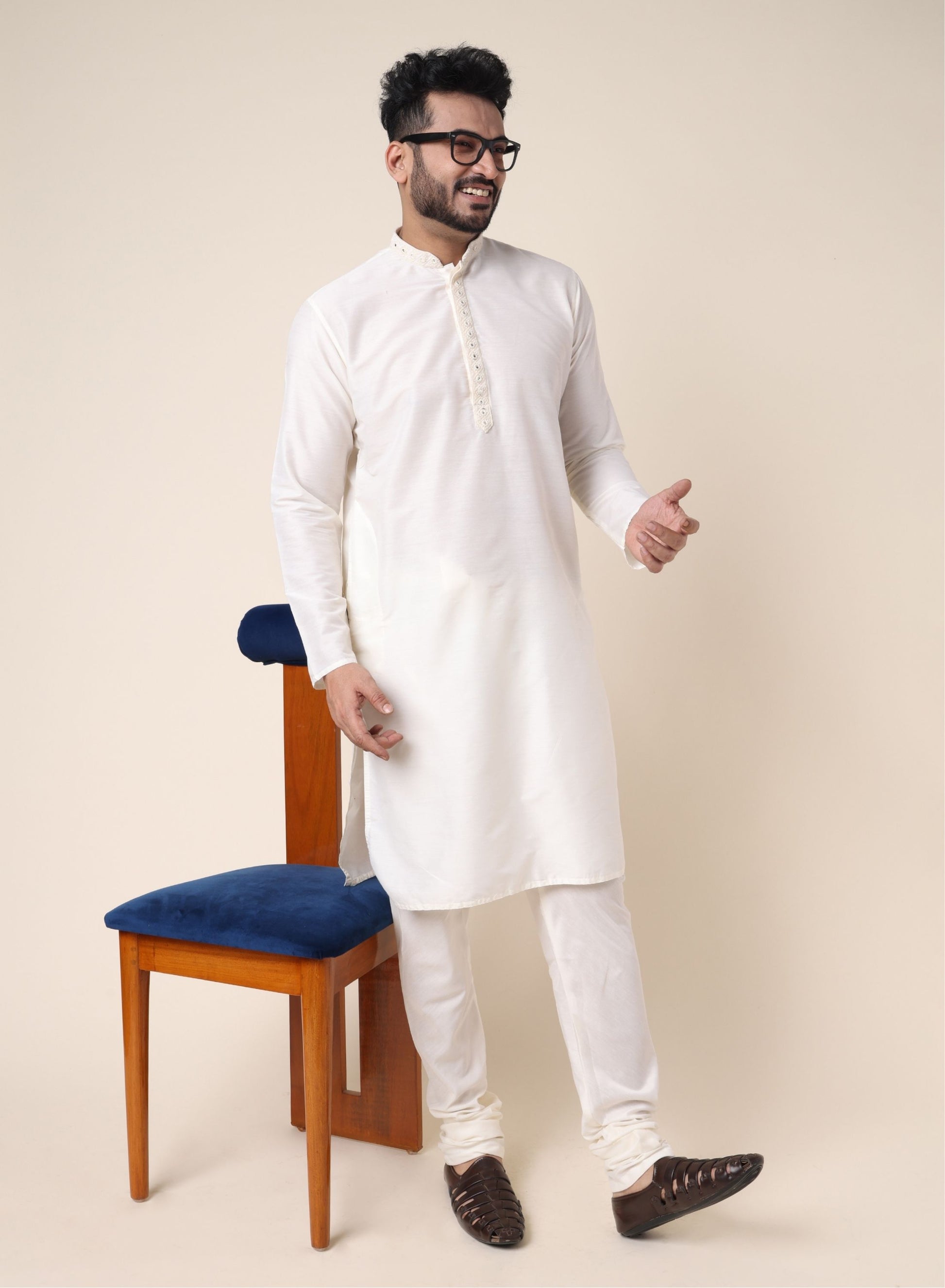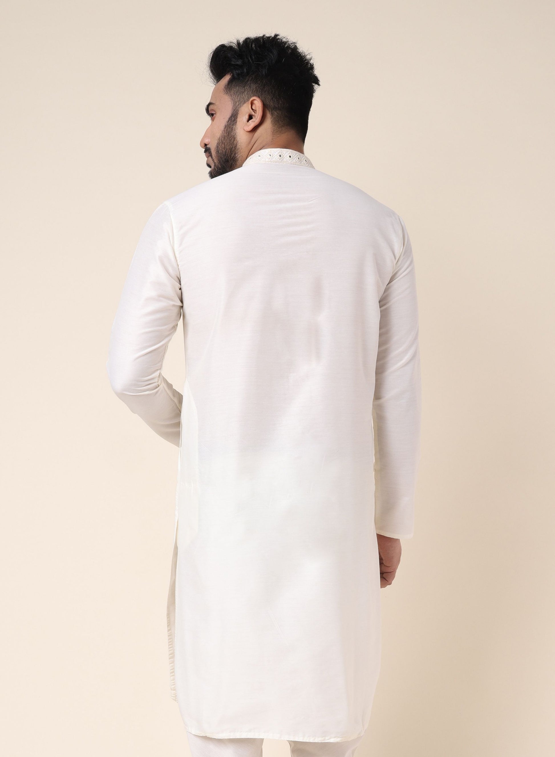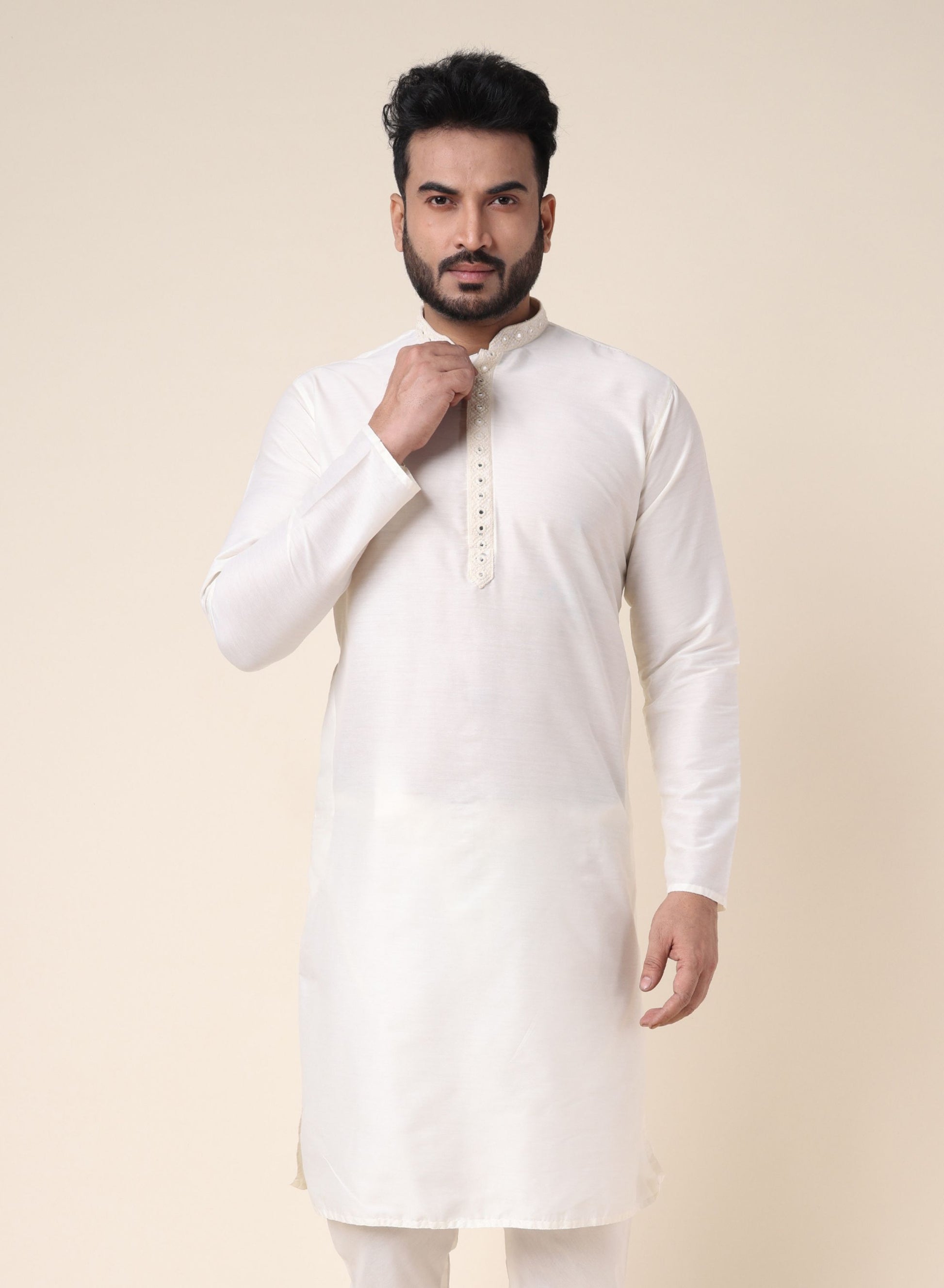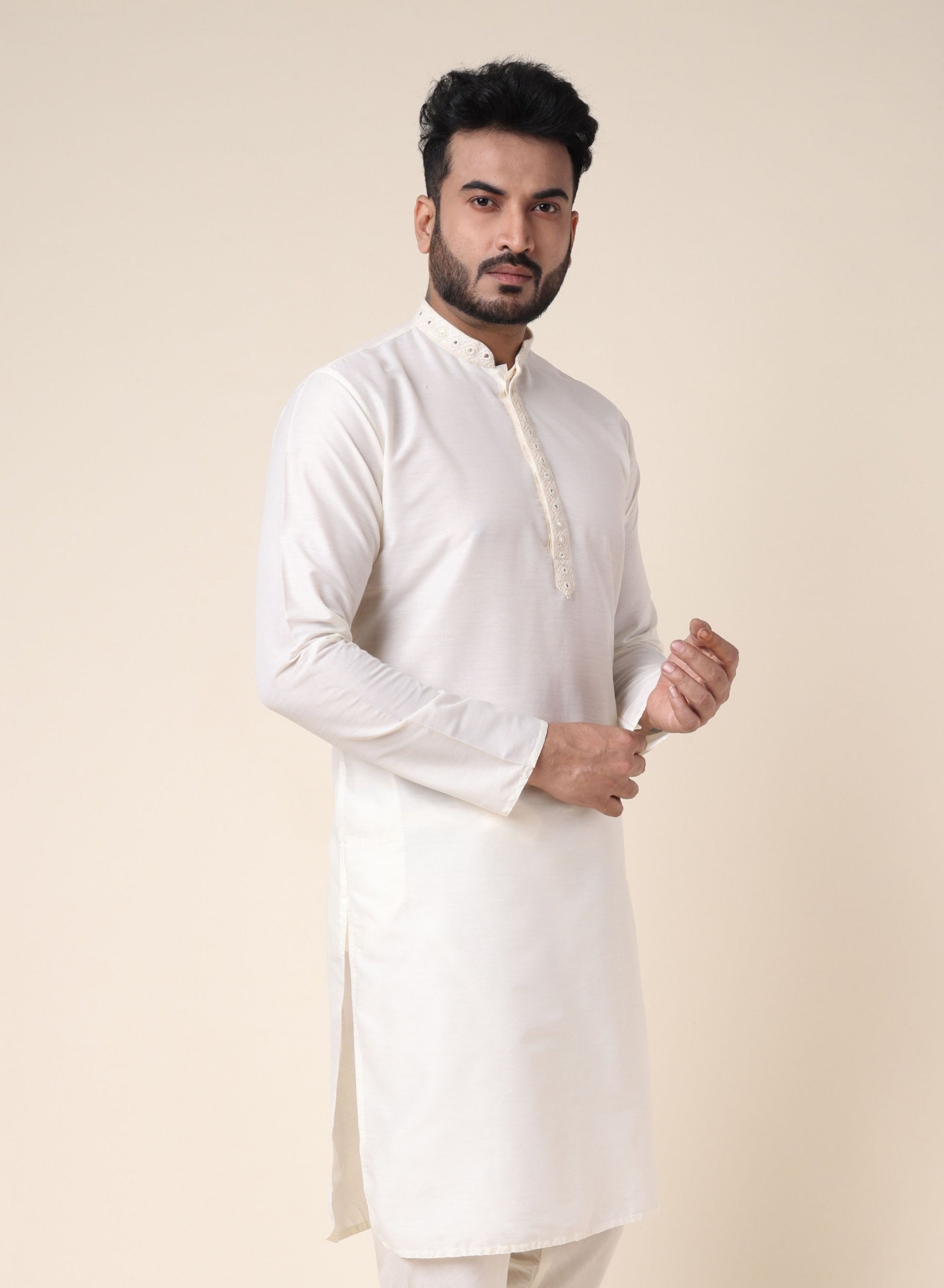 Men’s Cream Silk Kurta with Embroidered Detailing