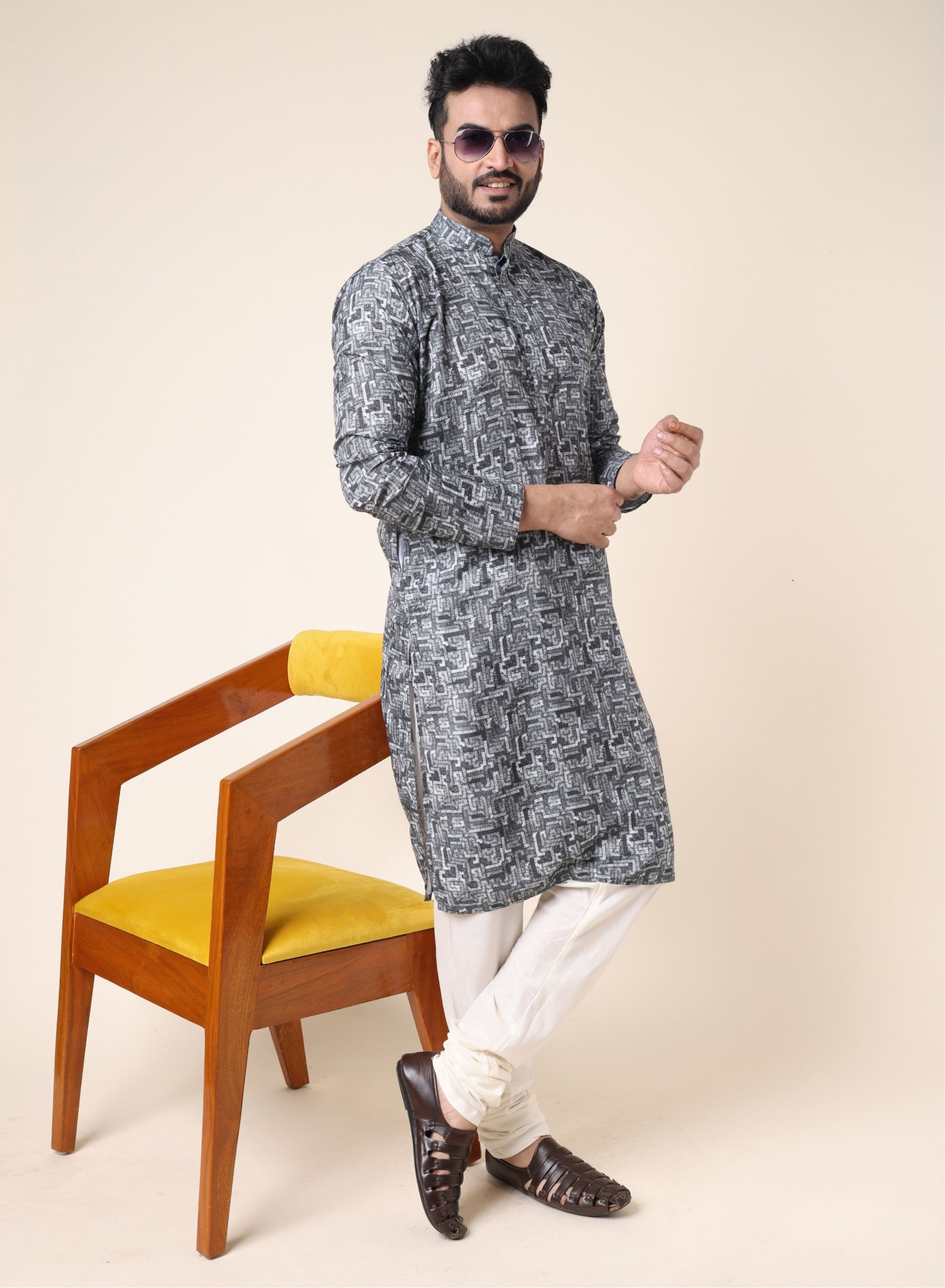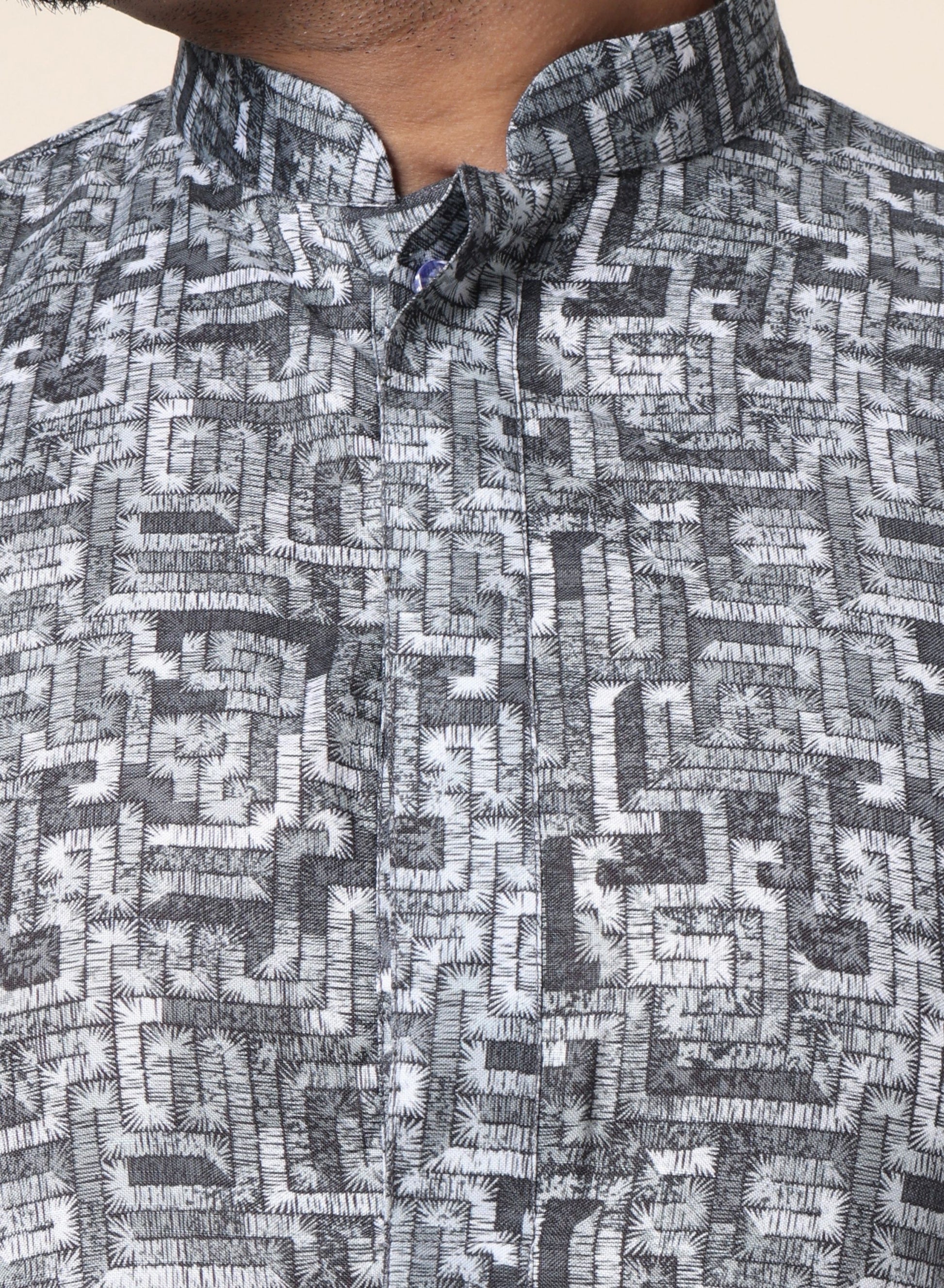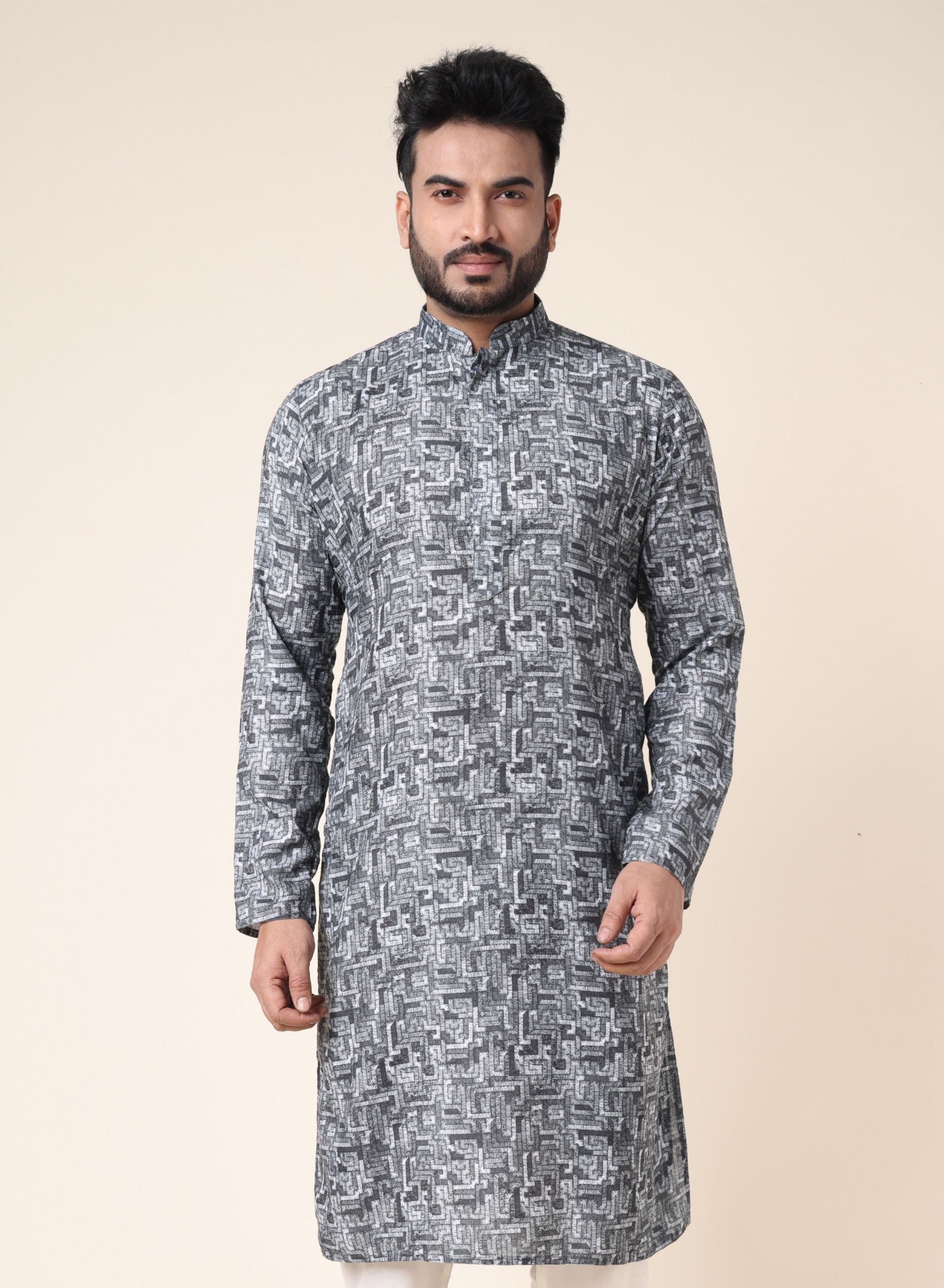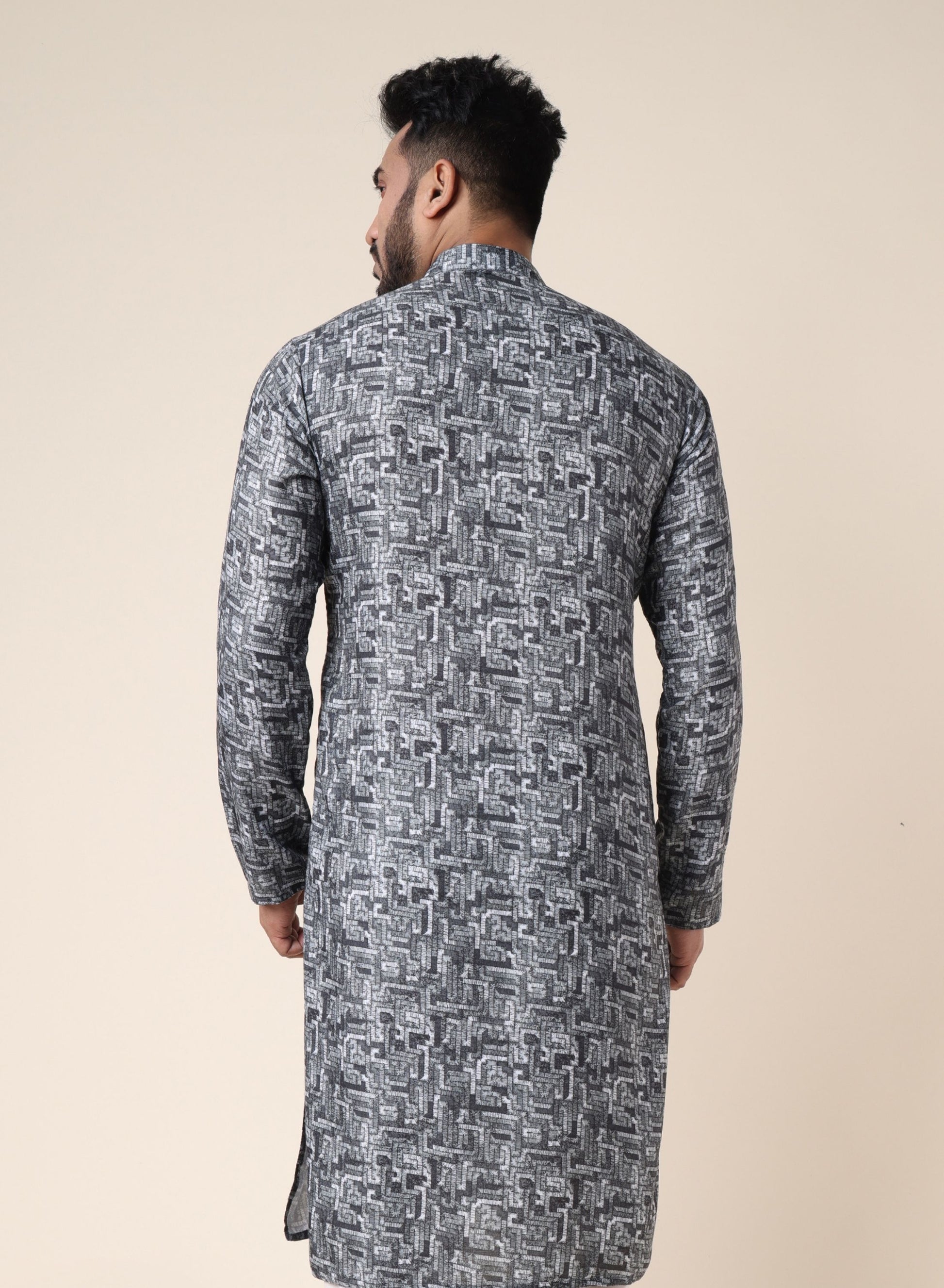 Men’s Grey Patterned Ethnic Kurta