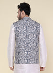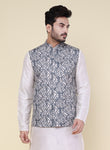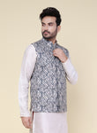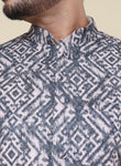 Men’s Grey Printed Silk Blend Nehru Jacket with Geometric Print