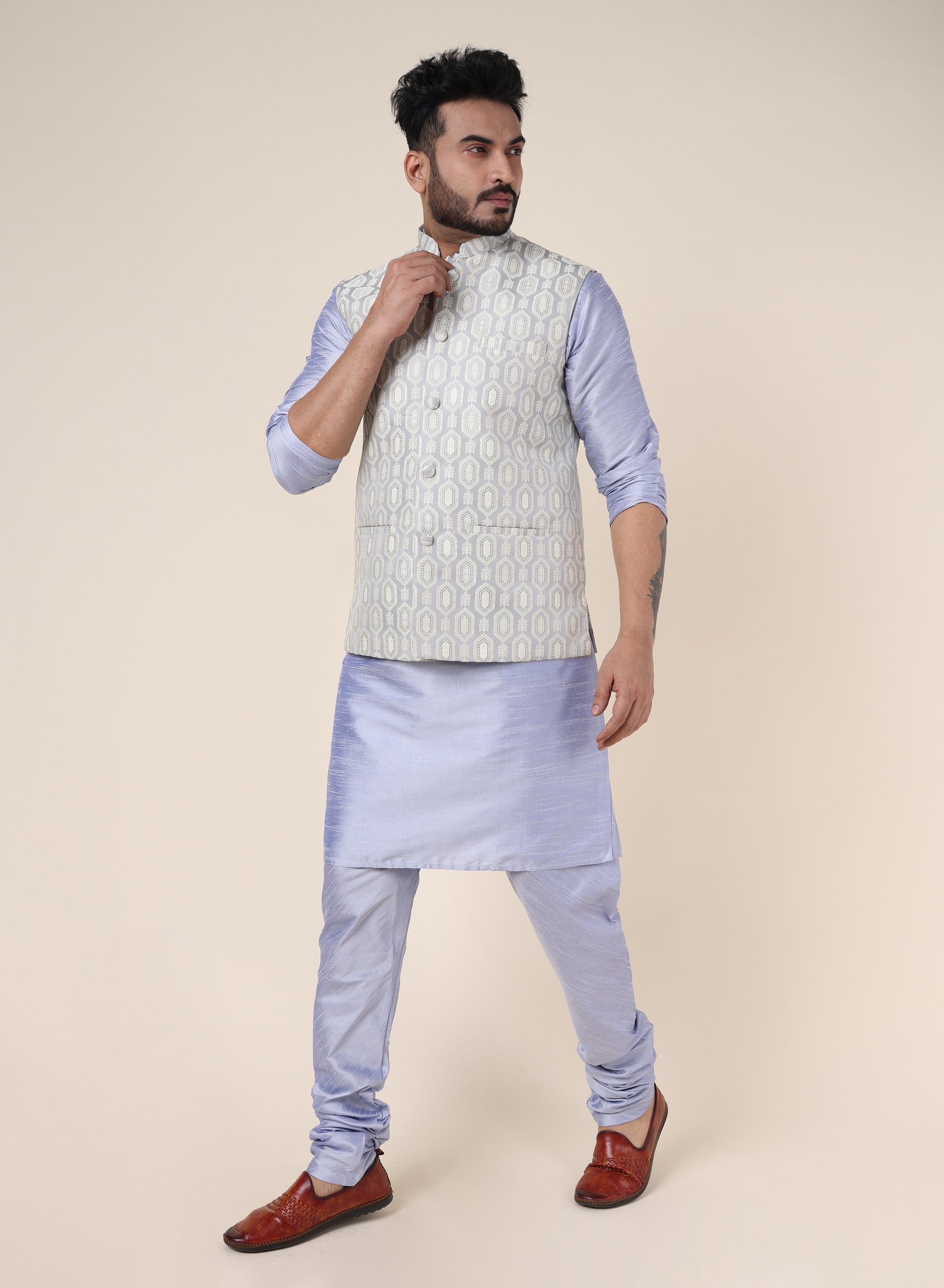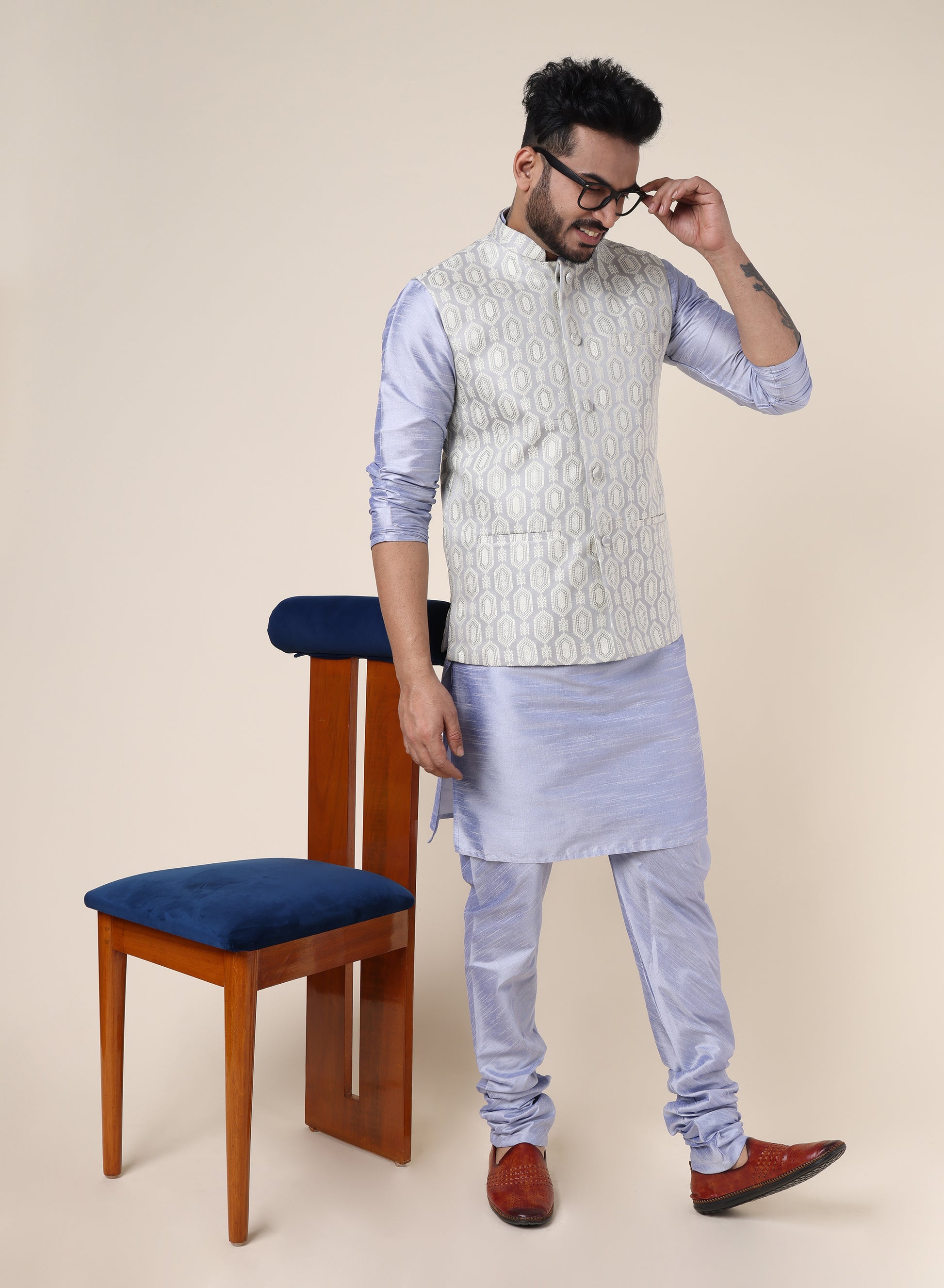 Men’s Hawa Silk Kurta Pajama Set with Grey Jacket