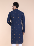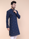 Men’s Navy Blue Printed Cotton Kurta