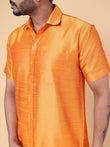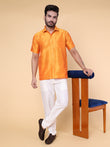 Men’s Orange Silk Shirt & Cream Pant Set