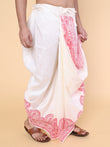 Men’s White Ready-to-Wear Silk Dhoti with Red Detailing