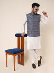 Men’s White Silk Kurta Pajama Set with Line Patterned Jacket