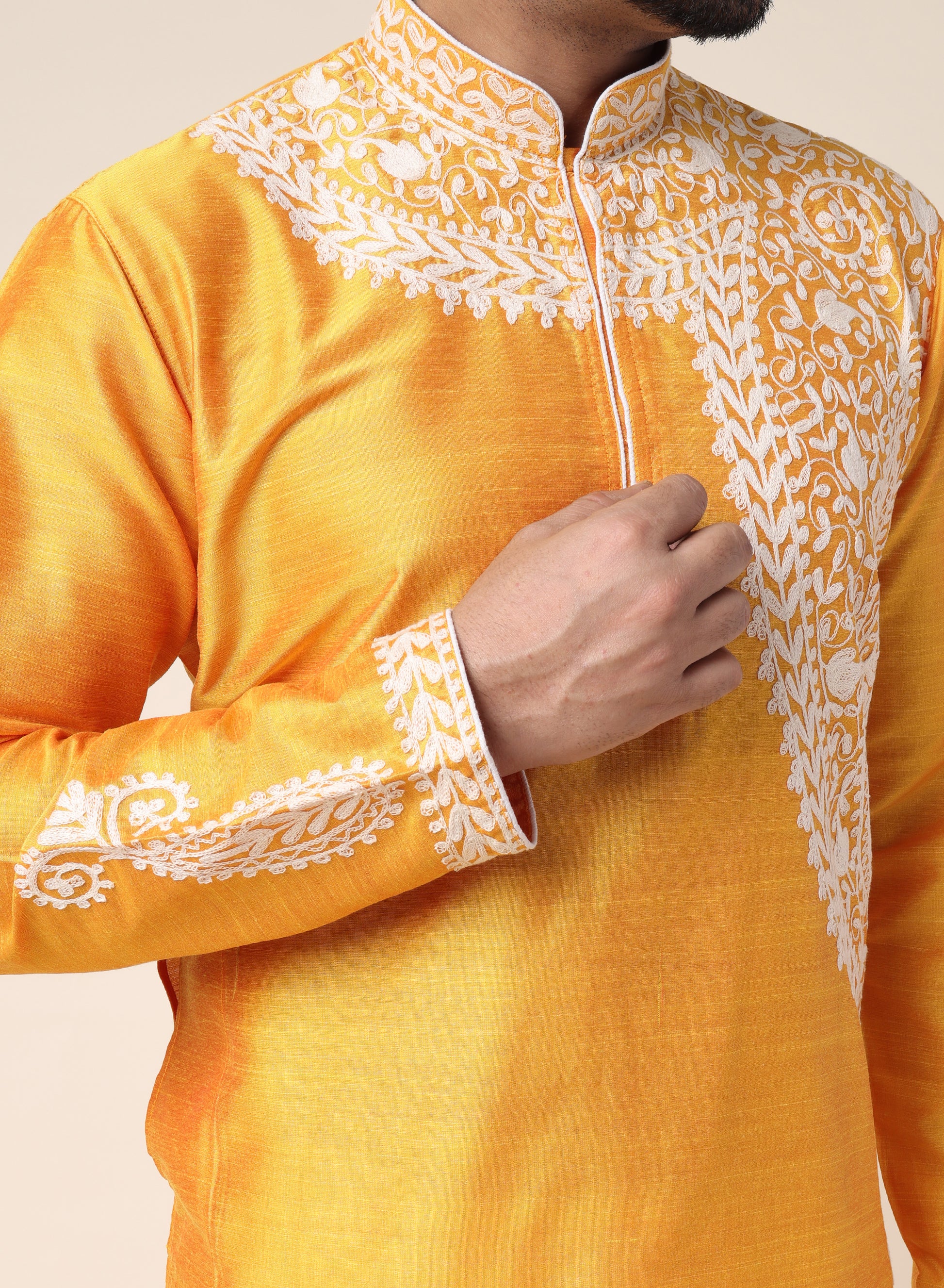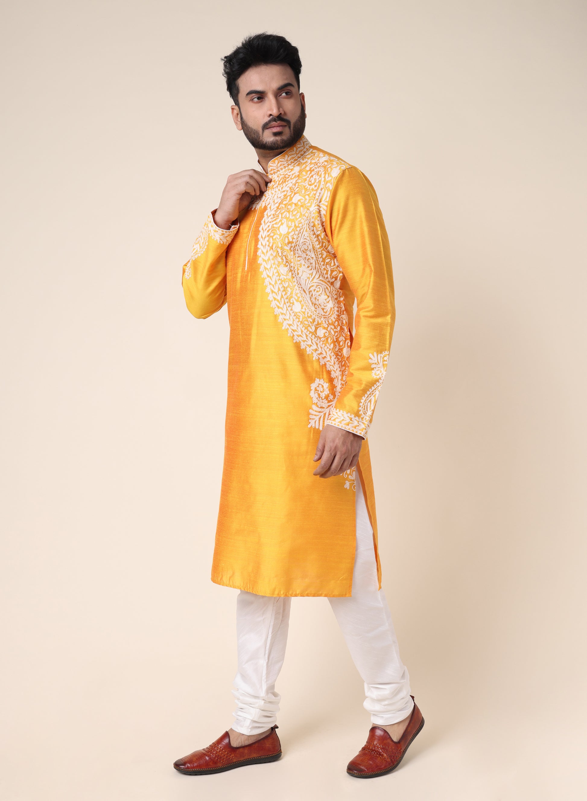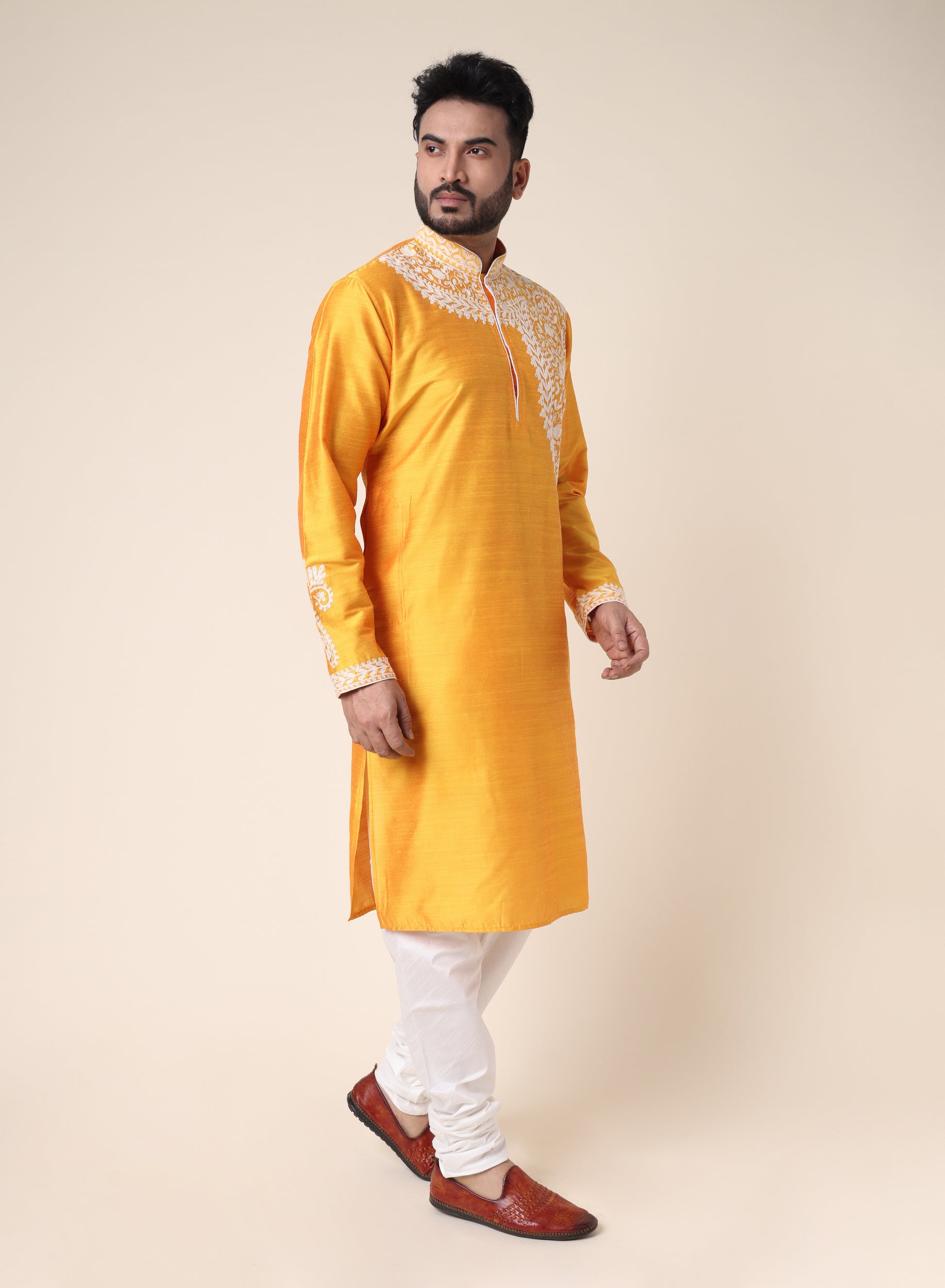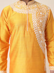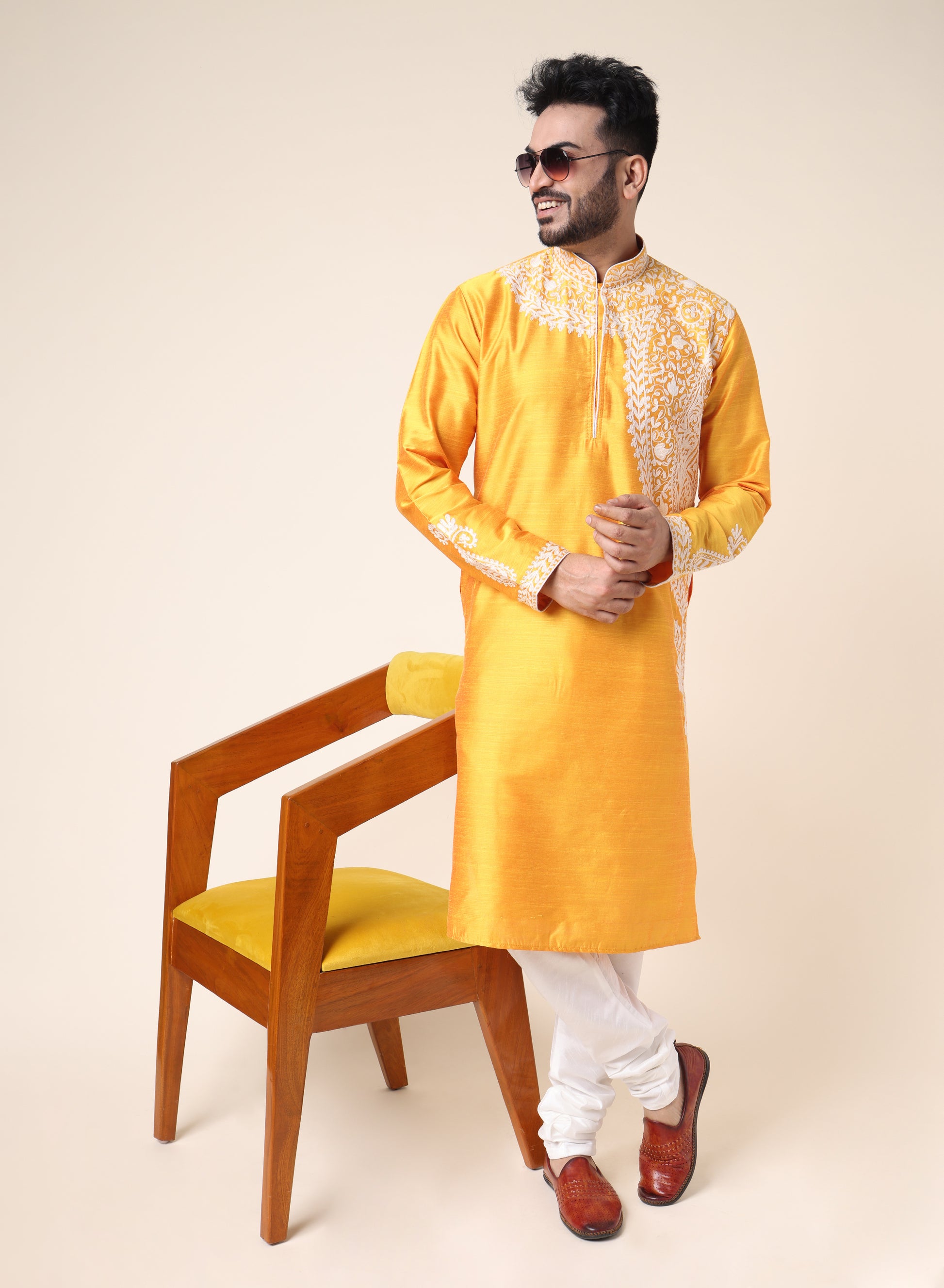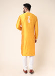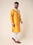 Men’s Yellow Designer Kurta with White Embroidery