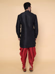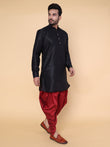 Men's Black Silk Blend Kurta with Maroon Dhoti Set
