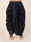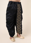 Men's Black Silk Blend Ready-to-Wear Dhoti with Golden Embroidered Border