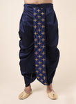 Men's Blue Silk Blend Ready-to-Wear Dhoti with Golden Embroidered Border