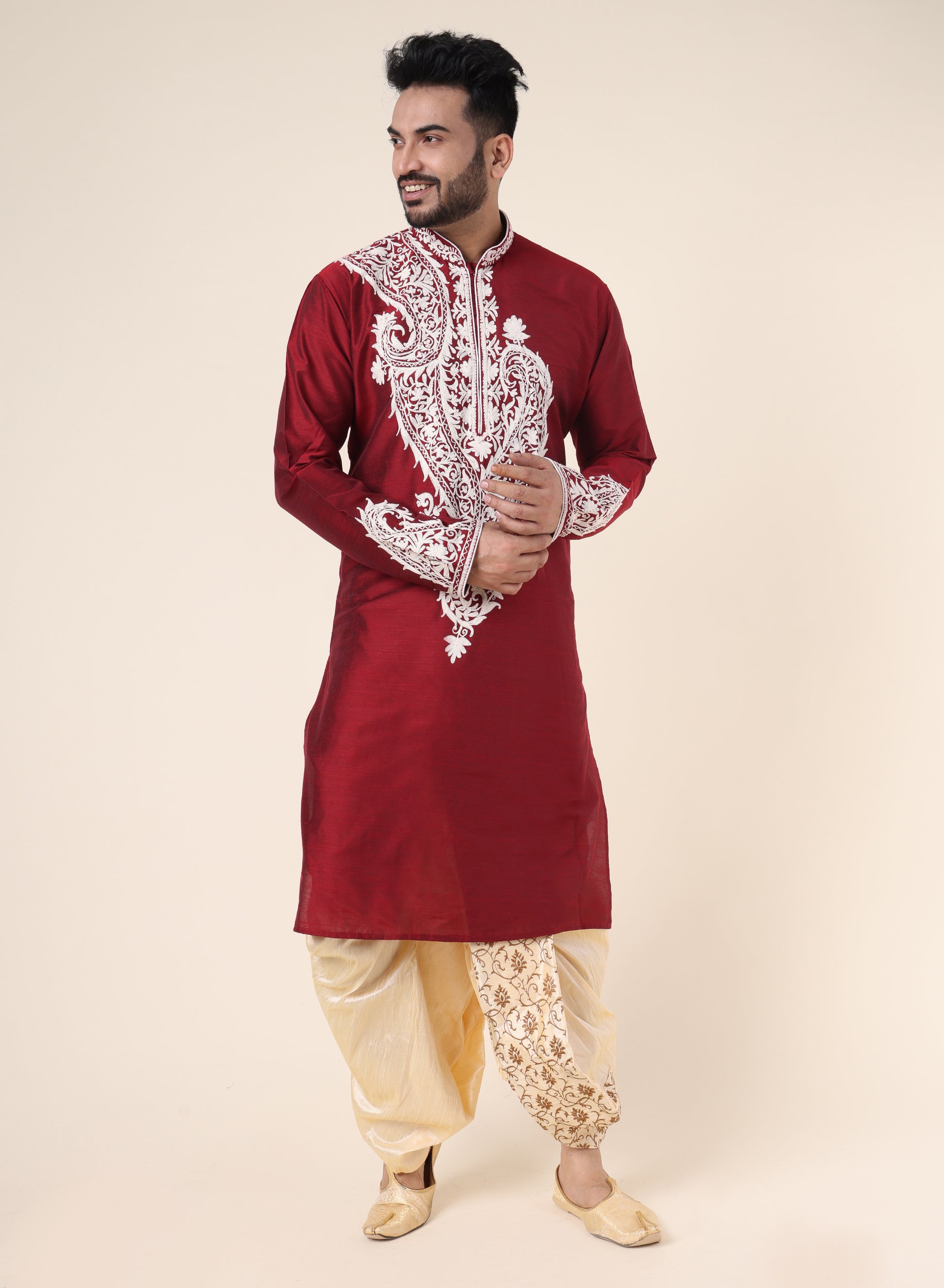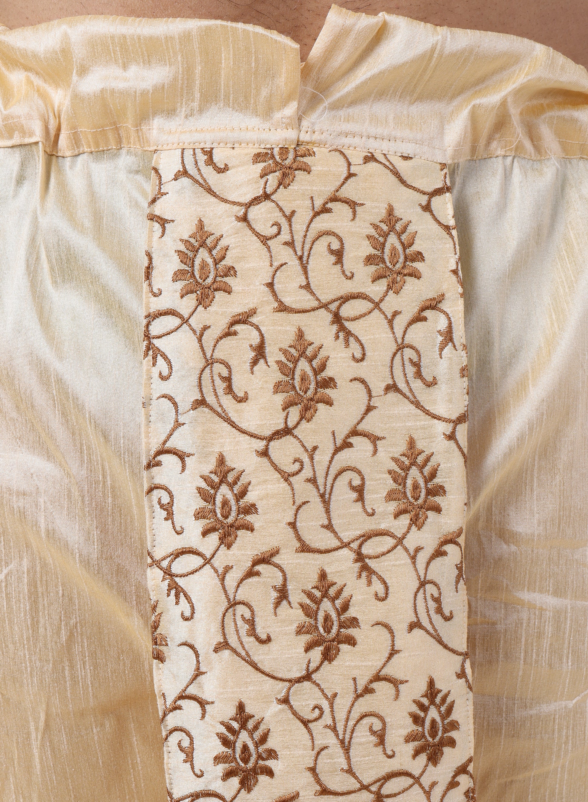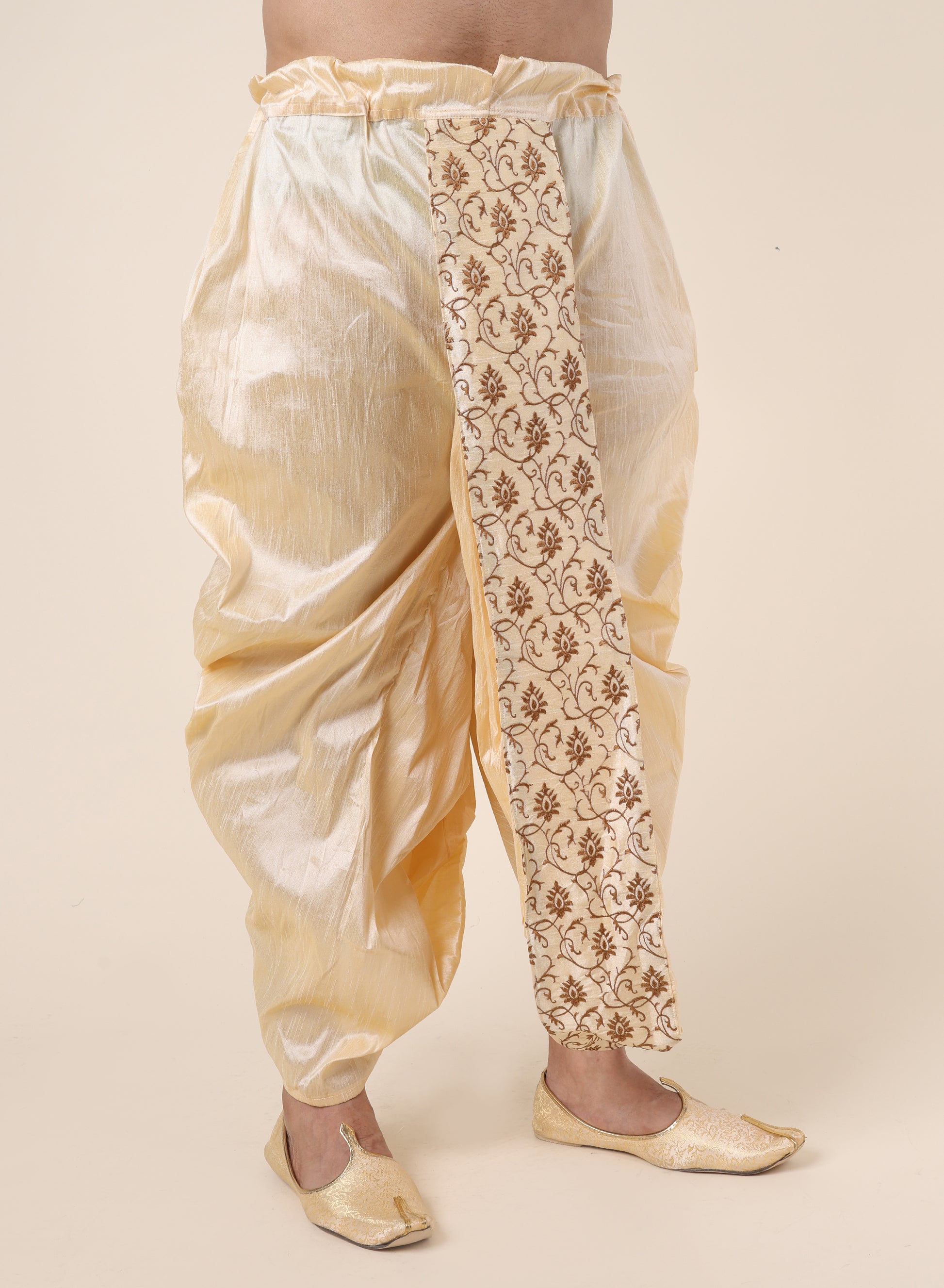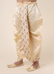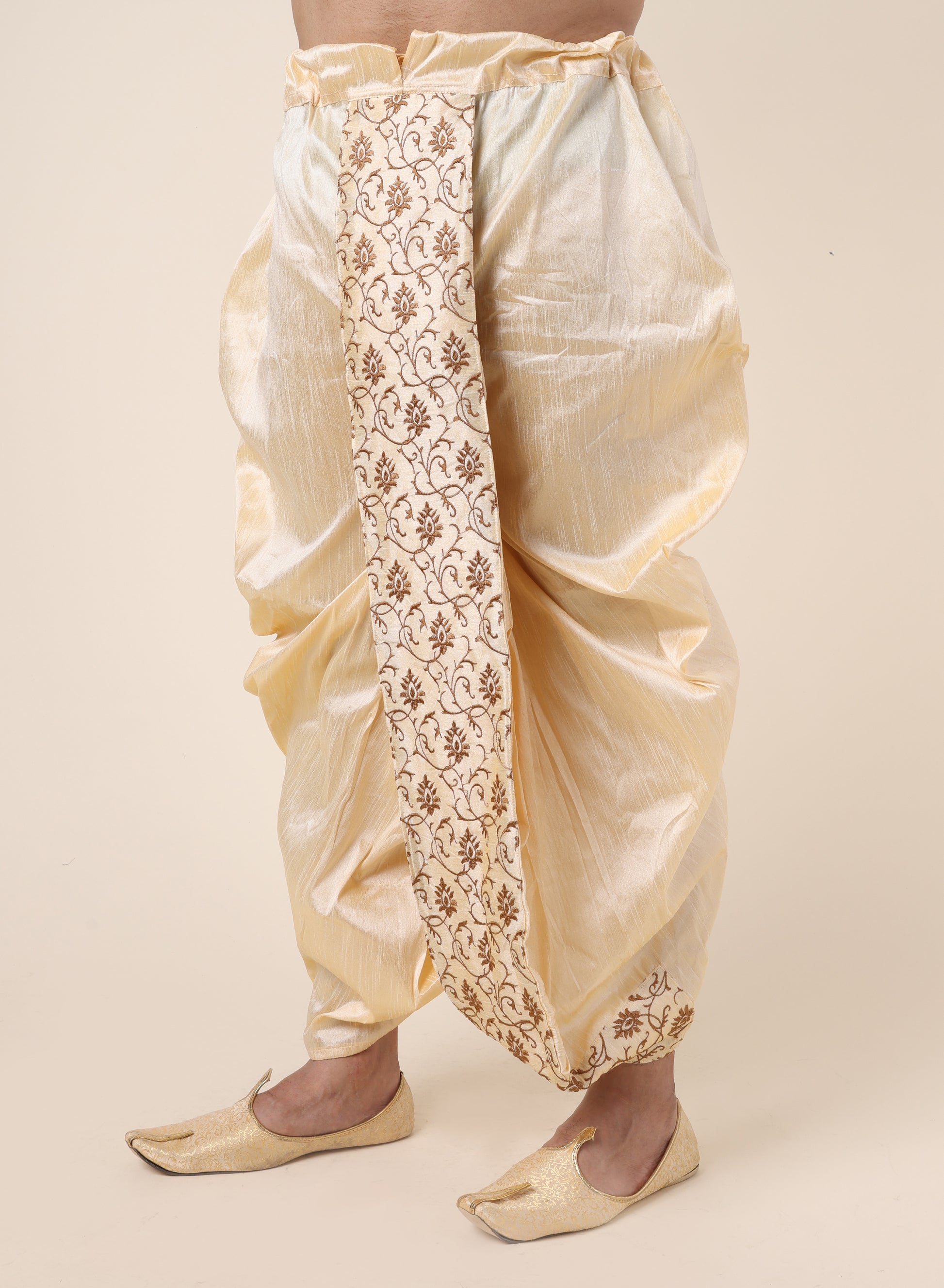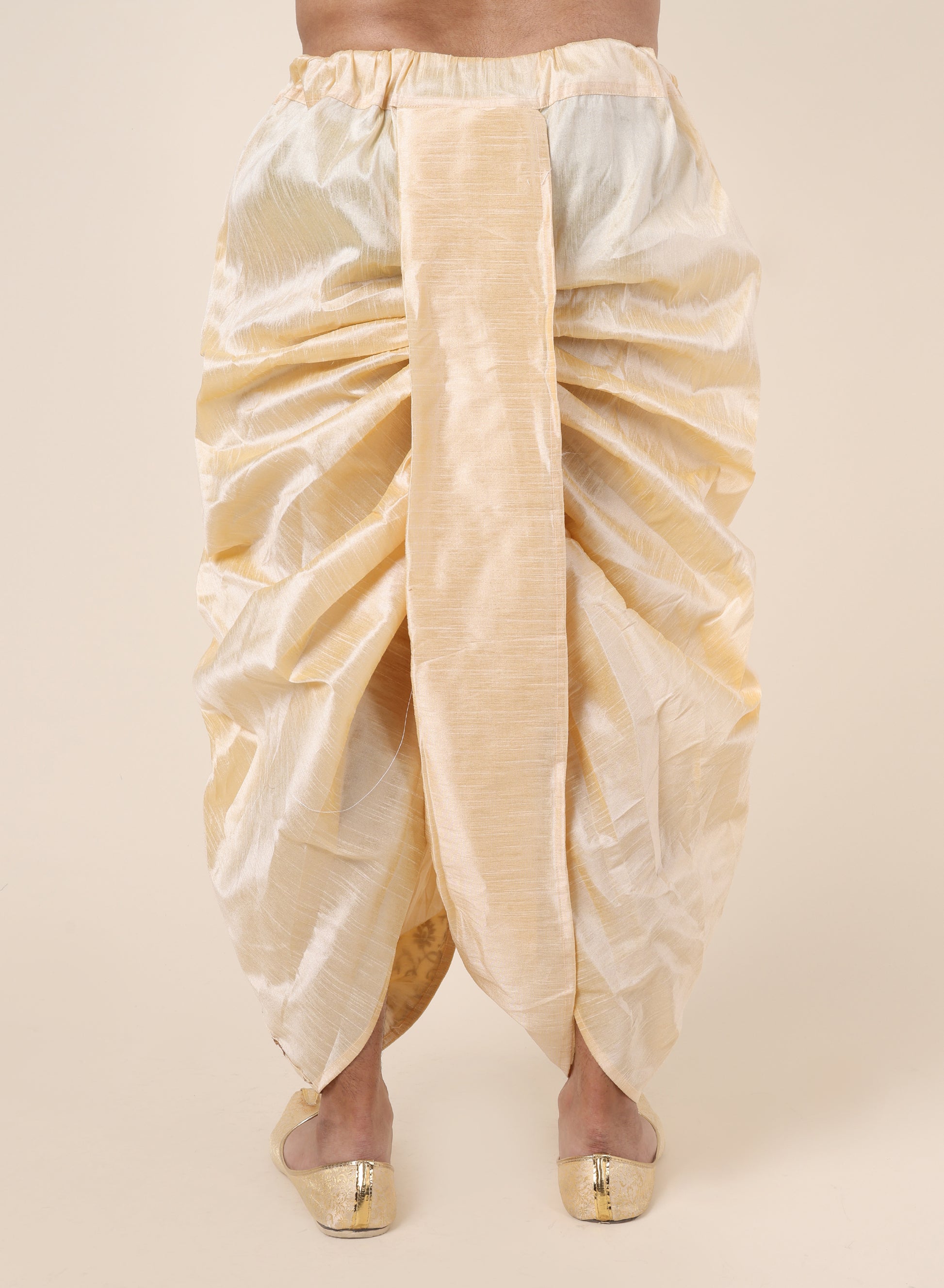 Men's Gold Silk Blend Ready-to-Wear Dhoti with Golden Embroidered Border