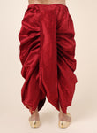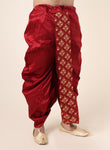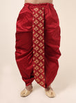Men's Maroon Silk Blend Ready-to-Wear Dhoti with Golden Embroidered Border