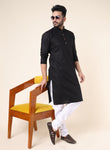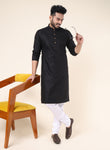 Men's Solid Cotton Black Kurta with Pajama